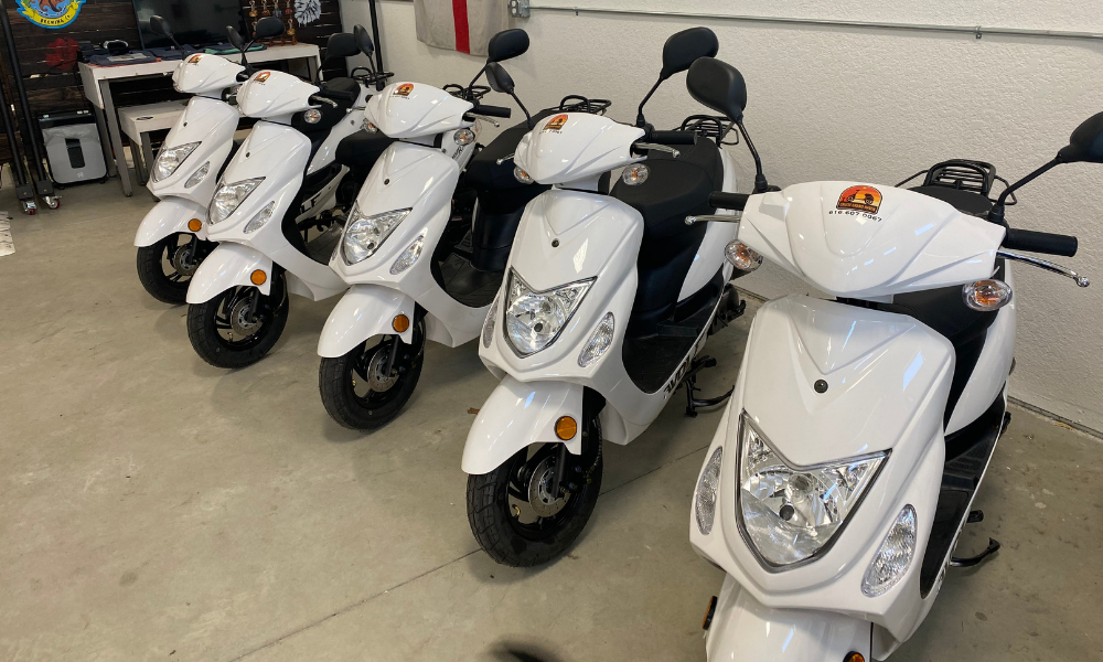 They have 16 brand new Wolf RX-50s available to rent by the hour, day or for multiple days. Easy to ride and easy to park, these mopeds will allow you to cruise in style as you sitesee downtown, stop at one of the great restaurants to eat, or head out to enjoy a day at the beach.