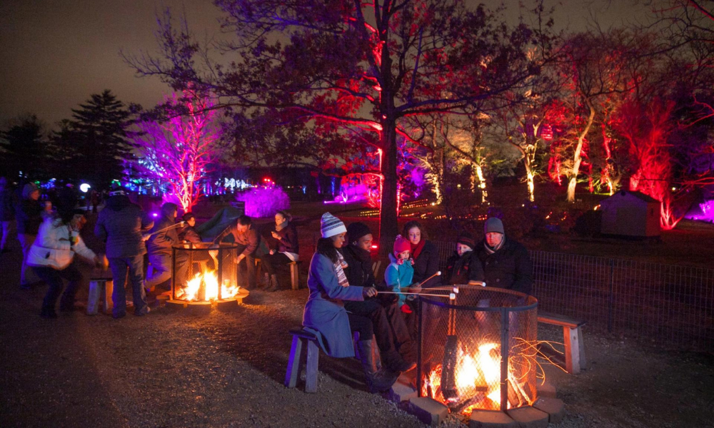 From Nov. 20 through Jan. 2, 2022, guests can explore 50 acres of the Arboretum’s majestic trees during a one-of-a-kind spectacle of color, light, and sound. The exhibition takes guests on a journey along a one-mile, paved walking path amid festive music and lighting effects that highlight the beauty of trees in winter. Along the route, guests can warm up by a crackling fire and roast marshmallows for s’mores, or stop in one of the concession tents for a snack and beverage.