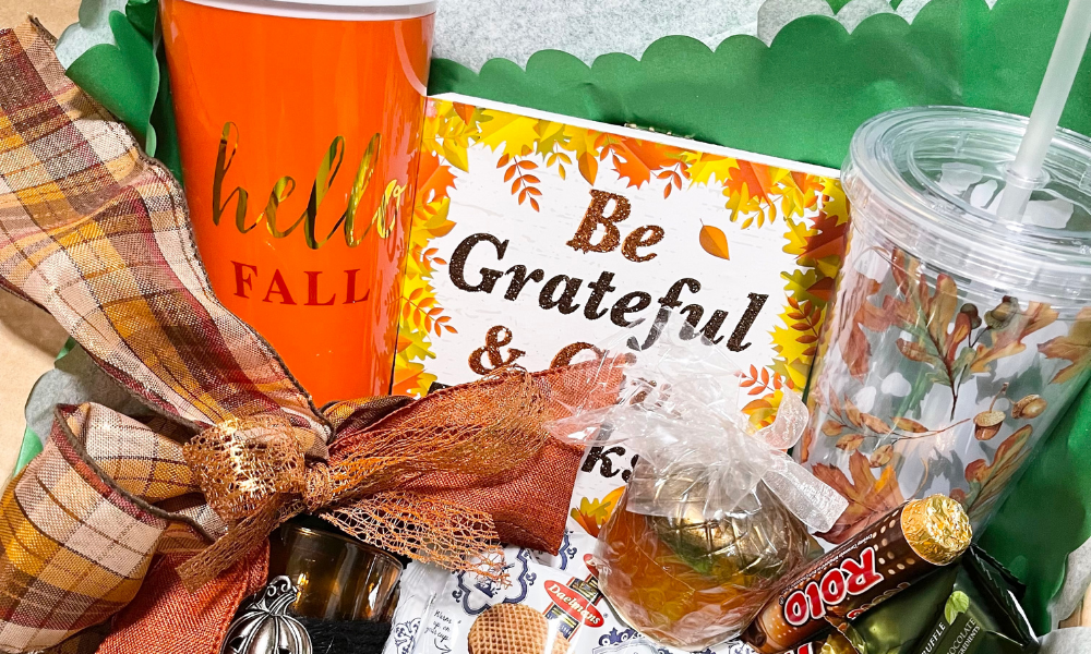 I like to randomly send “Gratitude Boxes” to friends and family to let them know that I am thinking about them. Here is a fun way to say “I’m grateful for you” in a fun fall way: