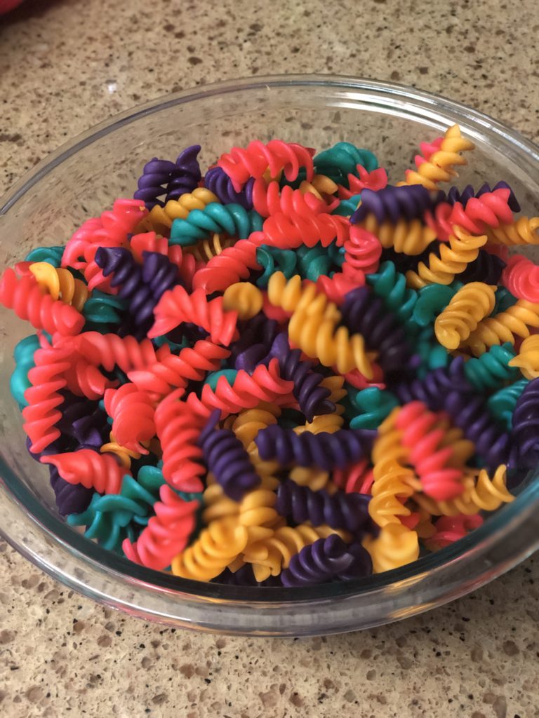 4. Colorful Noodles – Dye your noodle water with food coloring or kool aid mix to get fun colored noodles