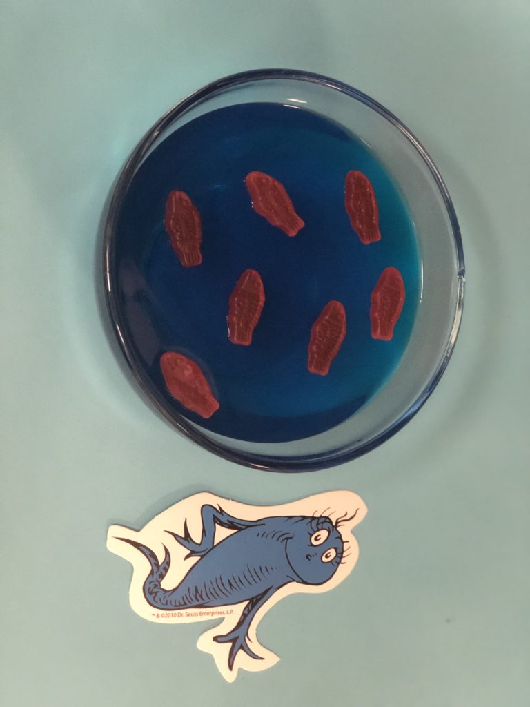 6. Red Fish Blue Fish – Blue jello and Swedish fish