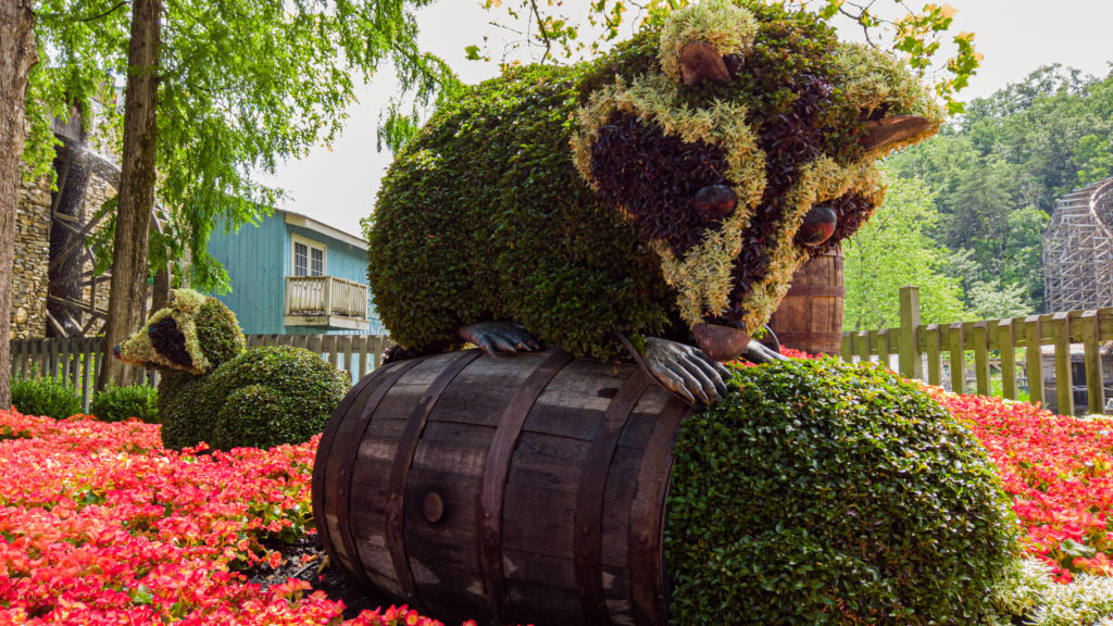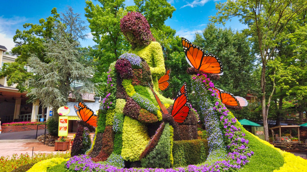 Mosaiculture icons include a peacock, a beekeeper tending to a hive, and a mallard duck. These whimsical new additions join a lineup of beloved displays: the signature butterfly umbrella, woodland animal friends, and the touching depiction of Dolly’s mother crafting the Coat of Many Colors. These sculptures are designed in partnership with Mosaicultures International, a Montreal-based company that specializes in the art of elaborate floral decorations.