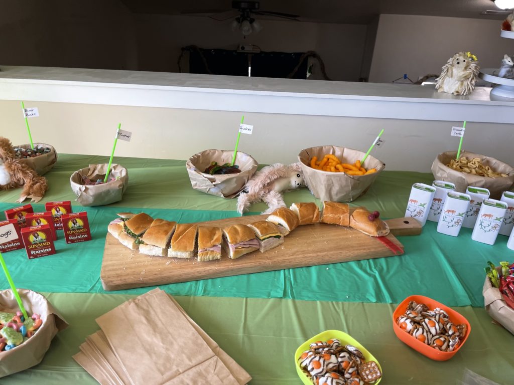 We watched the movie the night before our adventure so everyone had it fresh in their mind. The next morning we had a jungle-themed breakfast and had lunch laid out for the kids to pack up to take on our adventure.