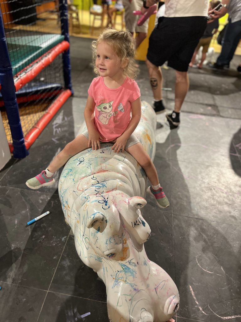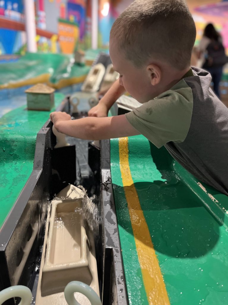 I like that there are hands-on art projects to do but also a great play area for preschoolers and then also for the bigger kids. In addition to that, there is a show you can watch too! We were able to spend several hours here and still had not done everything!