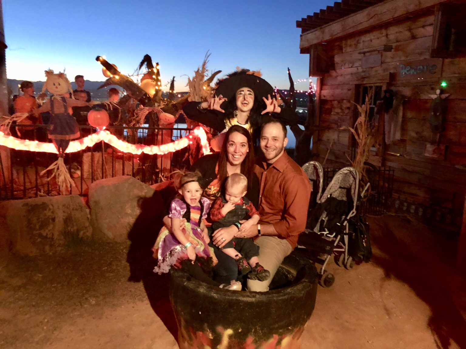 Once we had gotten everyone’s breakfast, we brought our kids in to eat with us and it was all so delicious! The kids just loved the waffles, eggs, sausage, and were thrilled to get chocolate milk! The witches came around and interacted with the kids, which by the way, my daughter cannot stop talking about. We may end up back there because she wants to go back and see her witch friends and is quite worried we lost them. I am going to have to come up with a story about where they go for the other 11 months of the year… ideas? They did a darling program that had you laughing… and well… laughing some more! No tears, unless they were tears of laughter! It really was such a delightful morning with our “witch friends”, great food, and fun entertainment! We then went outside and let the kids play at the farm for a while, but more on that later, because we had to go home to take a nap! We had a big evening back there at the farm so we let the kiddos sleep the afternoon away and then headed on back to Staheli Family Farm for the evening!