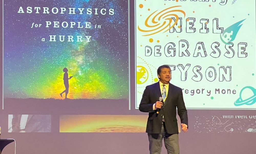 I was so excited to see Neil deGrasse Tyson at the Tilles Center for the Performing Arts at LIU Post because my hubby and I are HUGE fans. We read his books, watch his documentaries and listen to his podcast so I knew we had to see his show in person. What I didn’t expect was how much my two teenage daughters were going to love it. I had a feeling my sci-fi-loving daughter would like him but wasn’t too sure about the rom-com kid. Luckily his show was an entertaining, fun breakdown of how our favorite movies got the science right and how some got it wrong. The Wizard of Oz, Game of Thrones, Harry Potter, The Lion King, and even Love Story (yup rom-coms have science in them) was explained. We watched clips, learned a little science and math and he even chatted up the audience with some fun back and forth.