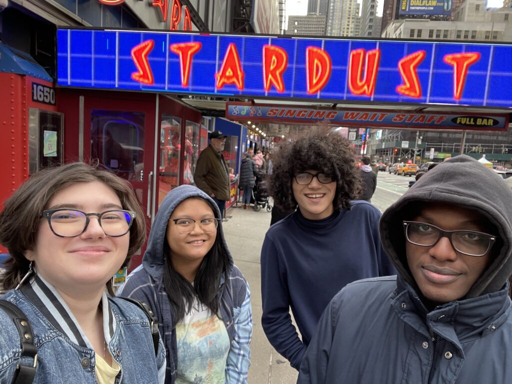 A day in New York City is not complete without lunch! I had no idea where we were going, but my parents planned it with Brandon, and he dropped us right in front of Ellen’s Stardust Diner. If you’re looking for a place to eat with excellent food options and even better entertainment this is the place for you. Yup, it’s a diner but what makes it even more fantastic is that as you’re waiting to order and eat, the wait staff belts out songs like they’re on a Broadway stage. It’s no surprise there was a line out the door and the place was packed. My friends and I are in the Thespian Honor Society so this was the perfect place for my birthday lunch and everyone was able to order something different.