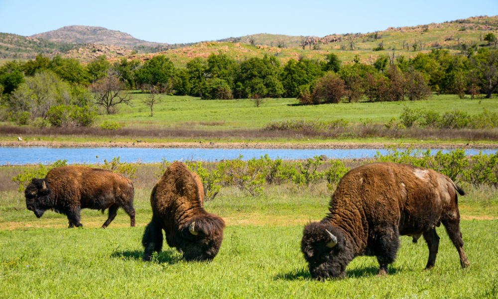 The Wichita Mountains Wildlife Refuge: This wildlife refuge in southwestern Oklahoma is home to a variety of wildlife, including bison, elk, and prairie dogs. Visitors can hike, fish, and camp in the park, or take a scenic drive through the mountains.