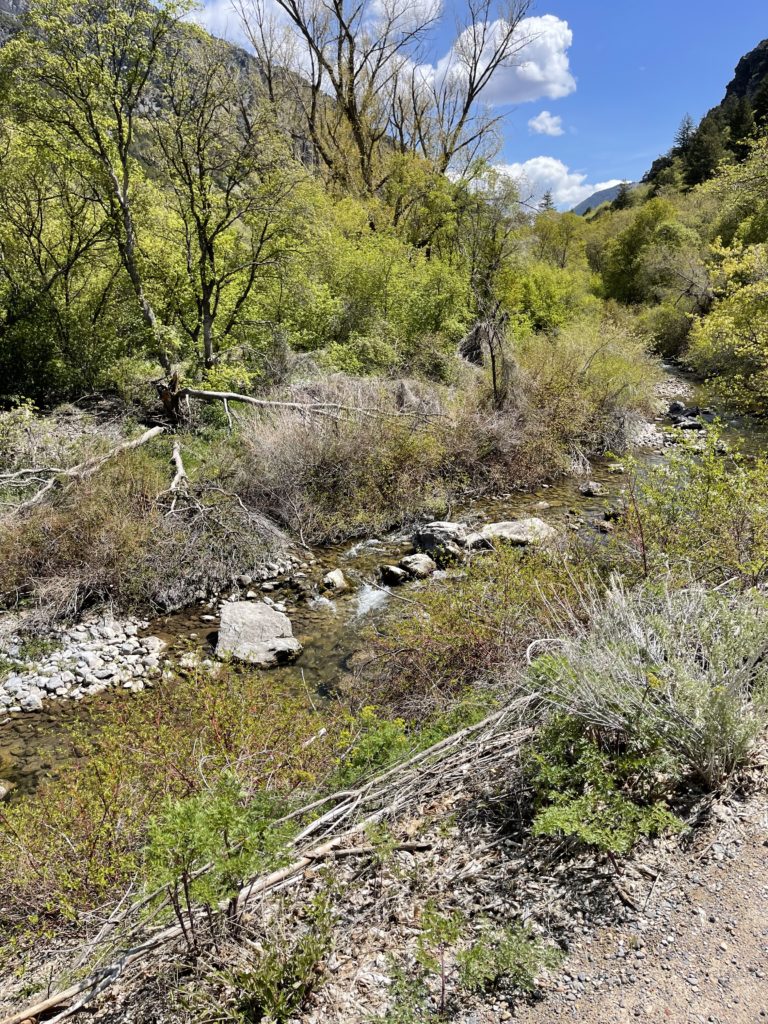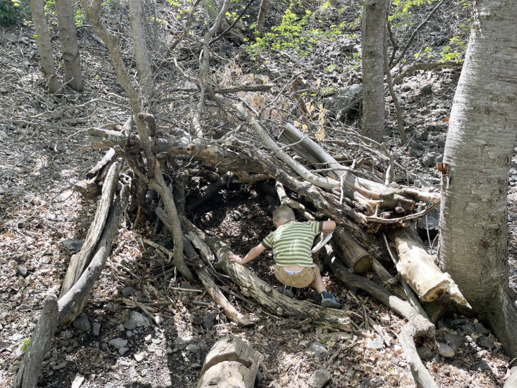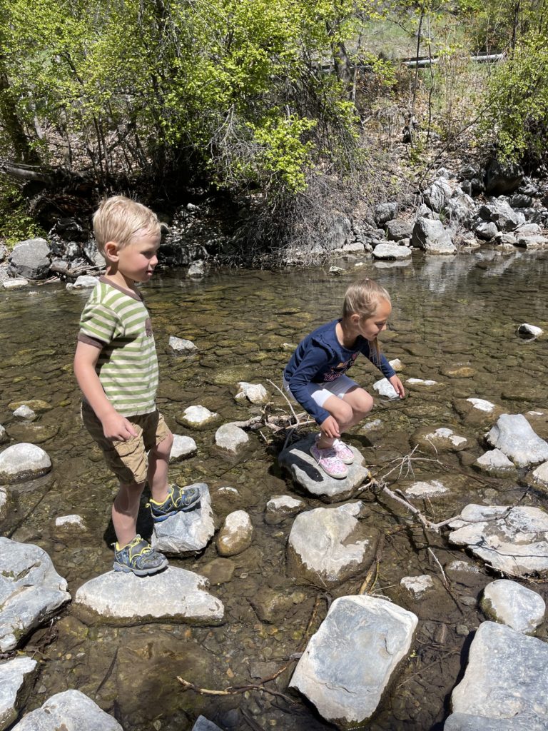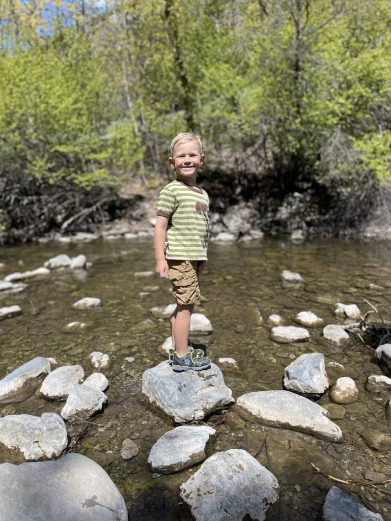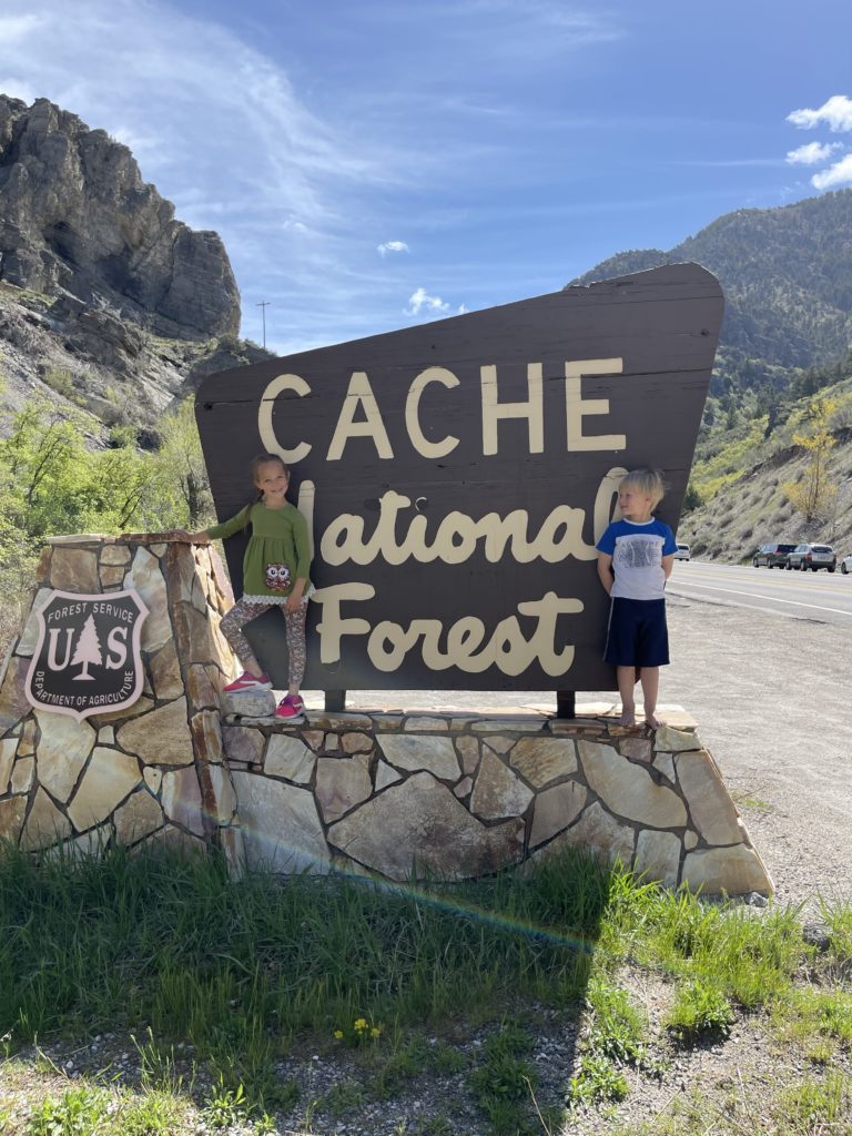 The walk to get to the Nature Center is about a half a mile in, so park by the “Cache National Forest” sign and walk across the road and down the trail. It is a beautiful walk and takes no time at all. My kids walk the whole way with no problem.