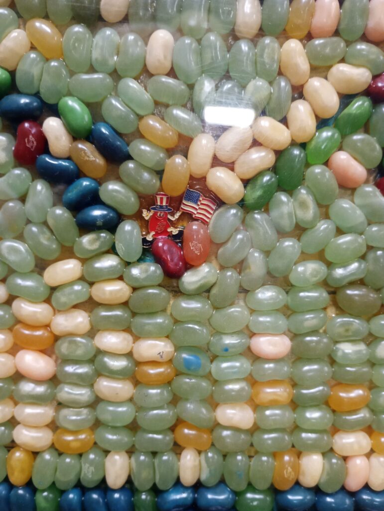 As you are on the tour, keep an eye out for Mr. Jelly Belly hidden throughout! They are tucked in everywhere–from the larger more obvious sightings to the tiniest hiding places (hint–look in the jelly bean art pieces!)