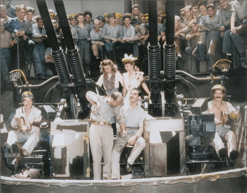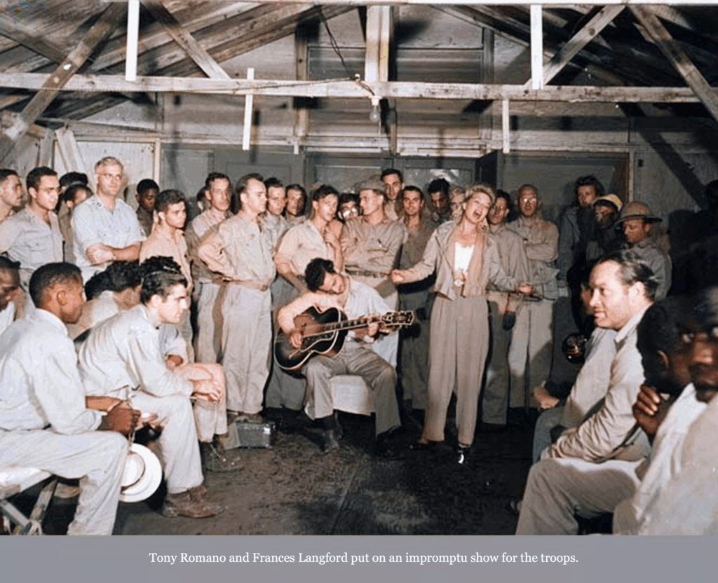 As part of the tribute, a special spotlight is being placed on legendary entertainer Bob Hope, whose unwavering support for the troops made him a beacon of comfort during the darkest days of the war. New colorized photos of Hope during his WWII USO tours have just been released—capturing the magic he brought to soldiers across the globe.