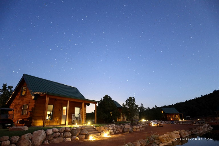 Located on a ranch just outside of Pine Valley in Central, Utah, these lakeside rentals are the perfect way to upgrade from a traditional camping tent to a glamping cabin. Each cabin is one-bedroom and can sleep up to 4 guests comfortably. Inside the cabins glampers will find an upstairs loft with a queen bed and a pull out sofa bed. Guests who stay here will be surrounded by an unparalleled mix of adventure and relaxation, as well as the ranch animals, which include horses, sheep, chickens, goats and pigs. Book Now