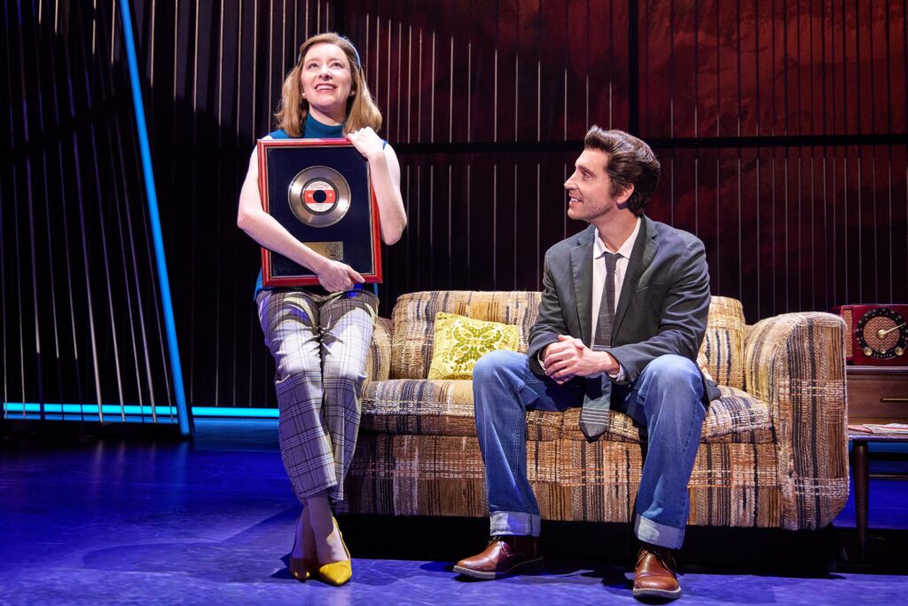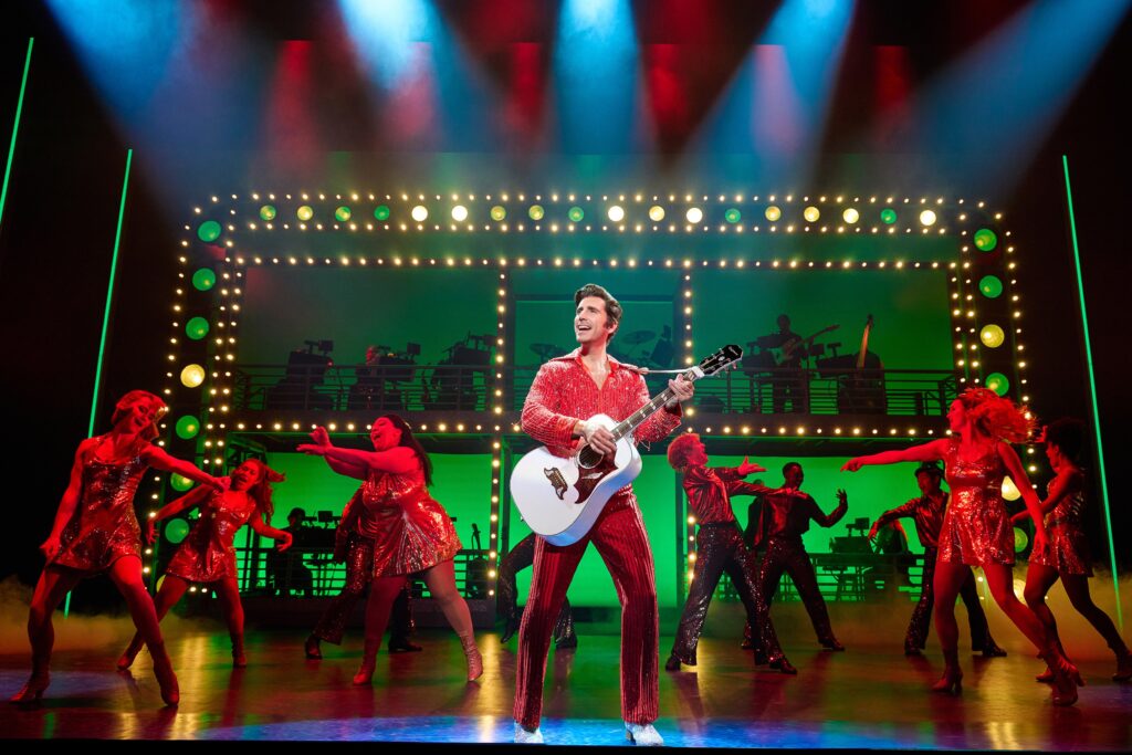 Visually, A Beautiful Noise dazzled. The costumes shimmered with era-perfect detail, echoing Diamond’s signature style without slipping into parody. The sets shifted fluidly between therapy rooms, recording studios, and sold-out arenas, each transition punctuated by lighting and choreography that kept the energy high. And the music, written, of course, by Neil Diamond himself, was met with unmistakable love from the audience. Moments of participation weren’t just encouraged; they were inevitable. It felt like the entire theater was united in joy.