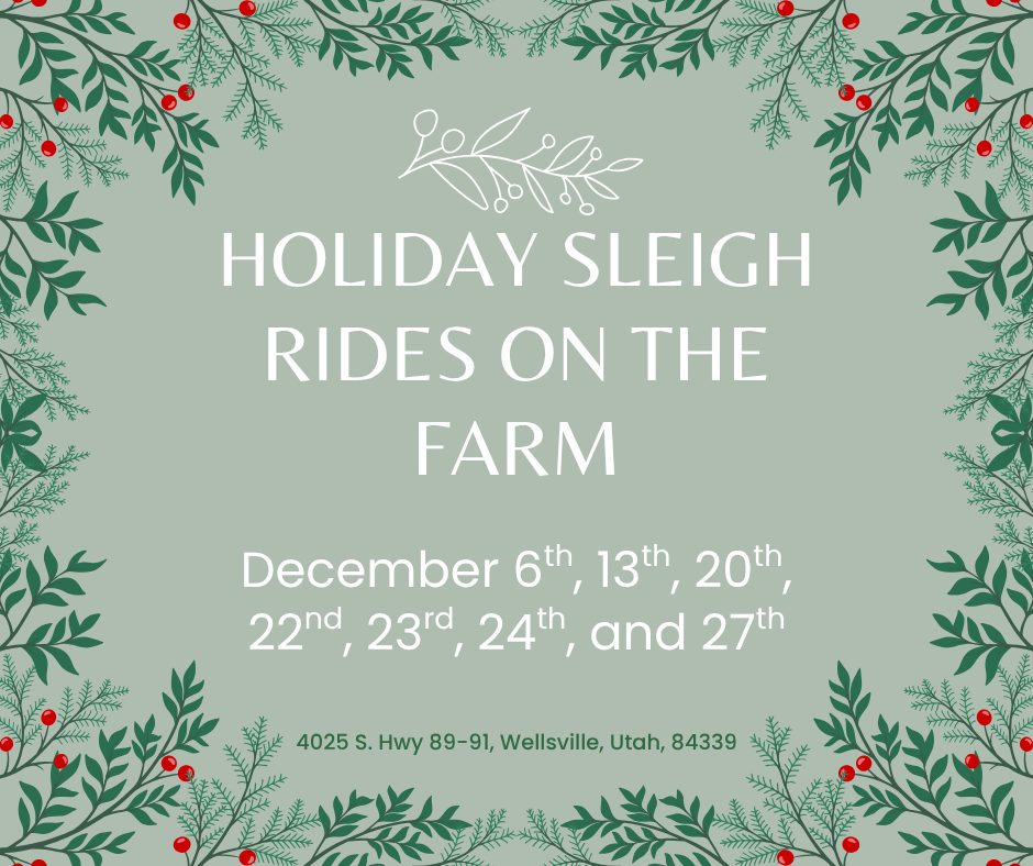Dates: December 6, 13, 20, 22, 23, 24, 27 $10 Per Guest | Includes Horse Drawn Wagon Ride Around the Farm, Warm Cookies,Hot Cocoa, Stops at Historic Buildings and Santa’s Workshop, & Sledding Hill(sledding dependent on snow)Santa Will Be Here December 13th, 20th, and 22nd from 10:30-1:30 and 2:00-4:30 https://www.facebook.com/events/855073591025368/855073621025365/?active_tab=about